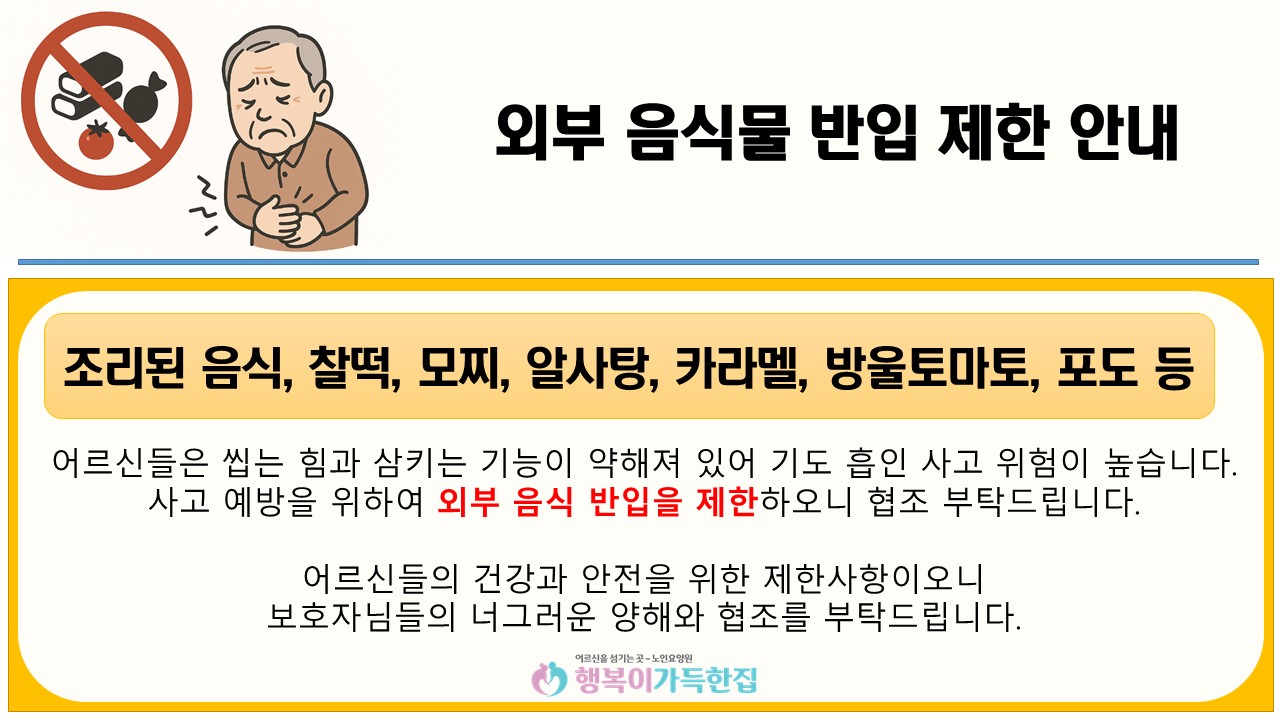 ¿ä¾ç¿ø ¹æ¹® ½Ã ¿ÜºÎ À½½Ä ¹ÝÀÔ ¾È³»»çÇ×